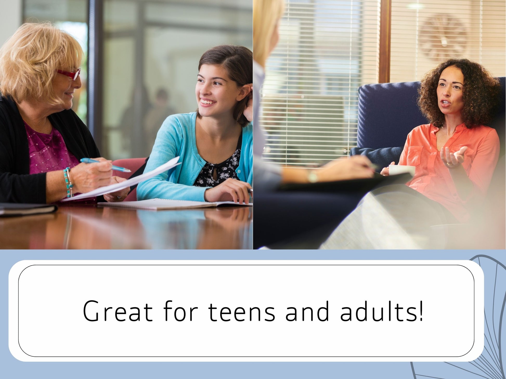 This product is designed as a psychoeducational product only. These products are NOT meant or designed for individualized psychotherapy/medical treatment or a replacement for individualized psychotherapy/medical treatment. These products cannot assess, diagnose, or treat individuals.